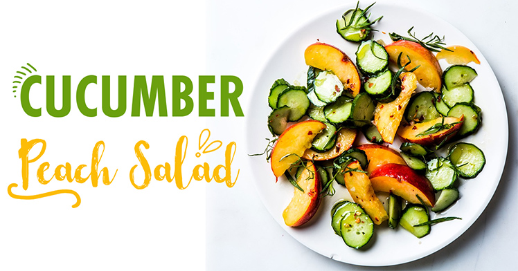 Combine peach, tomato, carrot, lettuce, onion, and cucumber in a large bowl. Mix olive oil, lemon juice, vinegar, salt, and pepper. Pour over peach, tomato, carrot, onion, and cucumber. Toss well to coat. Garnish with basil.